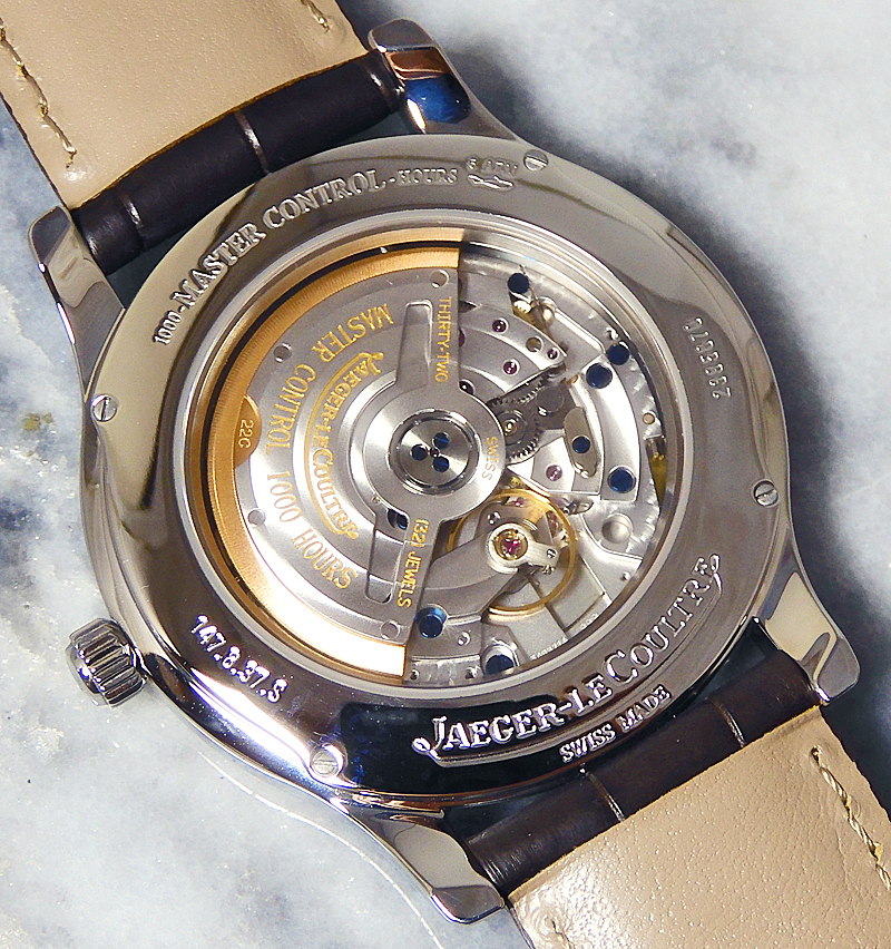 ジャガールクルト マスター コントロール JAEGAR-LECOULTRE Master Control 2005年のジュネーブサロンで発表されました。 ビックマスターが大きくなり、 ケースがマスターホームタイムと同様になりました。 シースルーバックです。 代理店品、中古美品
