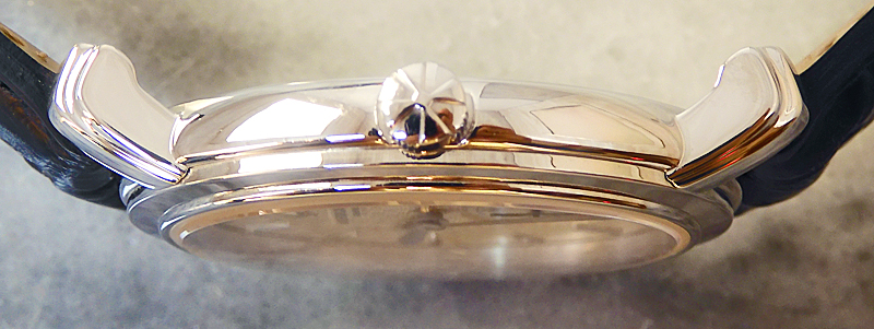 手巻 (cal-1400 20石 28,800振動) 18KWG-case (36mm) シースルーバック 革ベルト hand-stitched lether strap 18KWG-尾錠 3気圧防水