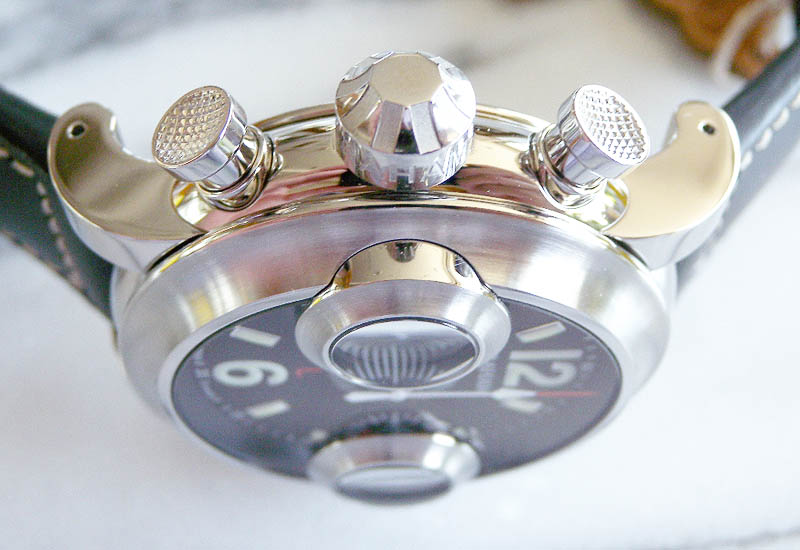 リューズ、プッシュボタンが左側に有ります。