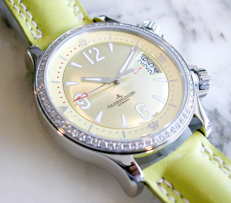 珍しい緑色文字盤です。