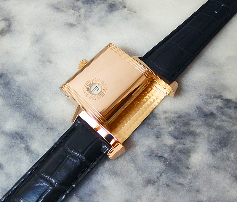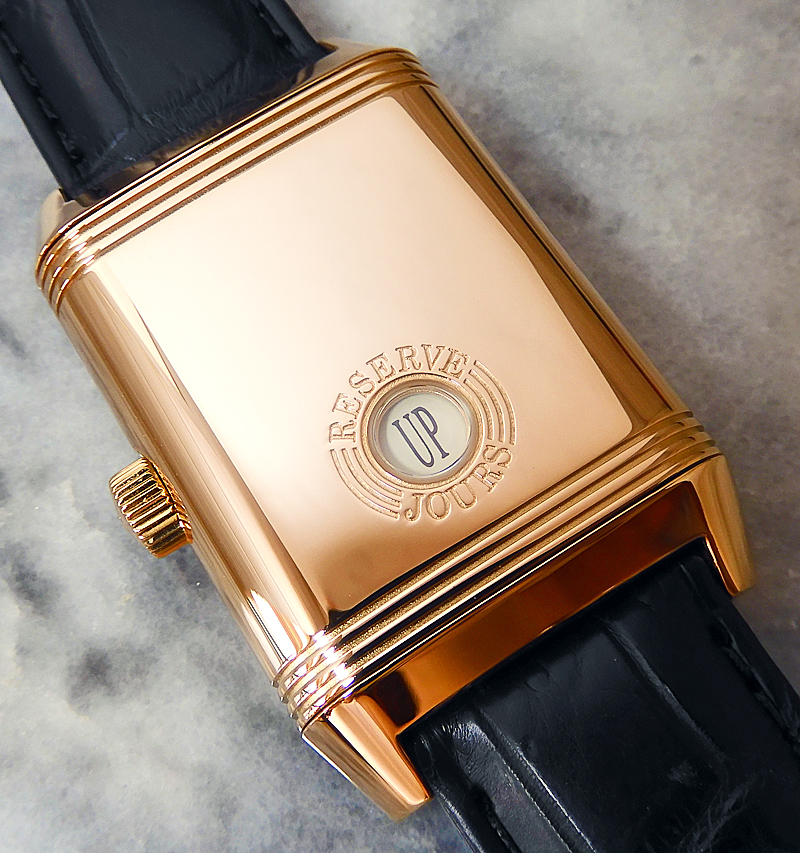 ジャガ−ルクルト レベルソ グランド リザーブ JAEGER-LECOULTRE reverso grand reserve 自動巻が必要ない、8日巻の機械(cal-874)を搭載してます。 ジャガールクルトの傑作品。 平行輸入品、中古美品