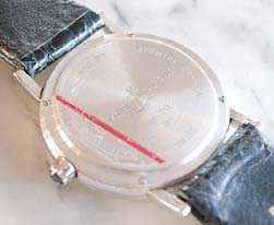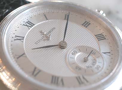 シンプルな手巻のプラチナケースの時計です。綺麗な文字盤です。