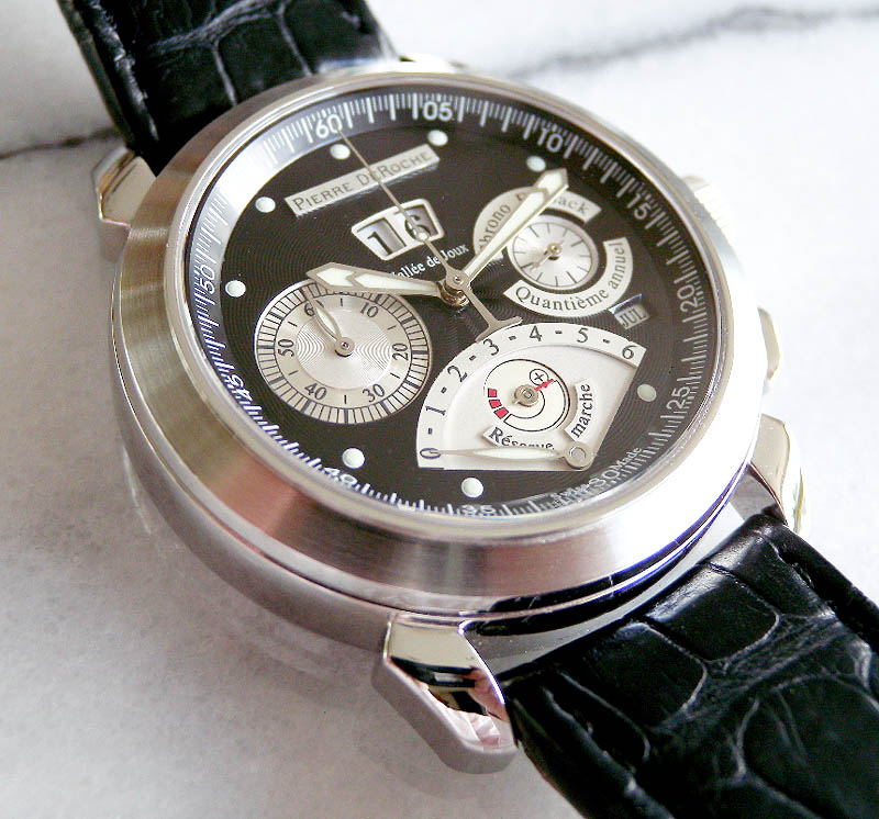 60分計とレトログラードの6時間積算計のフライバッククロノグラフ。